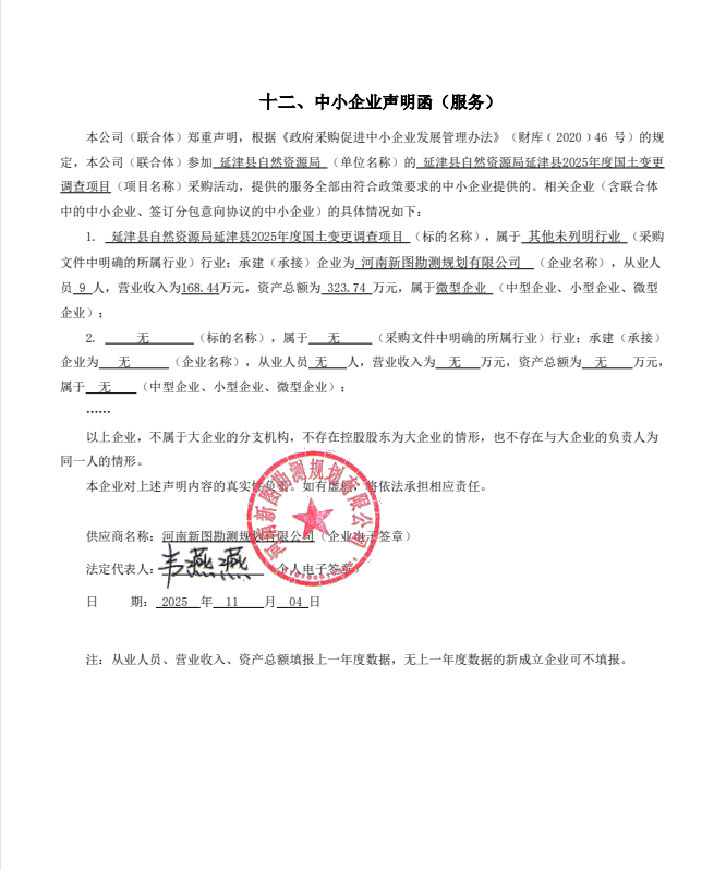 1 ******资源局延津县2025年度国土变更调查项目 详见附件 合格,符合国家相关规定及行业标准要求。 合同签订之日起至通过国家省市审核后止。 合格,符合国家相关规定及行业标准要求。