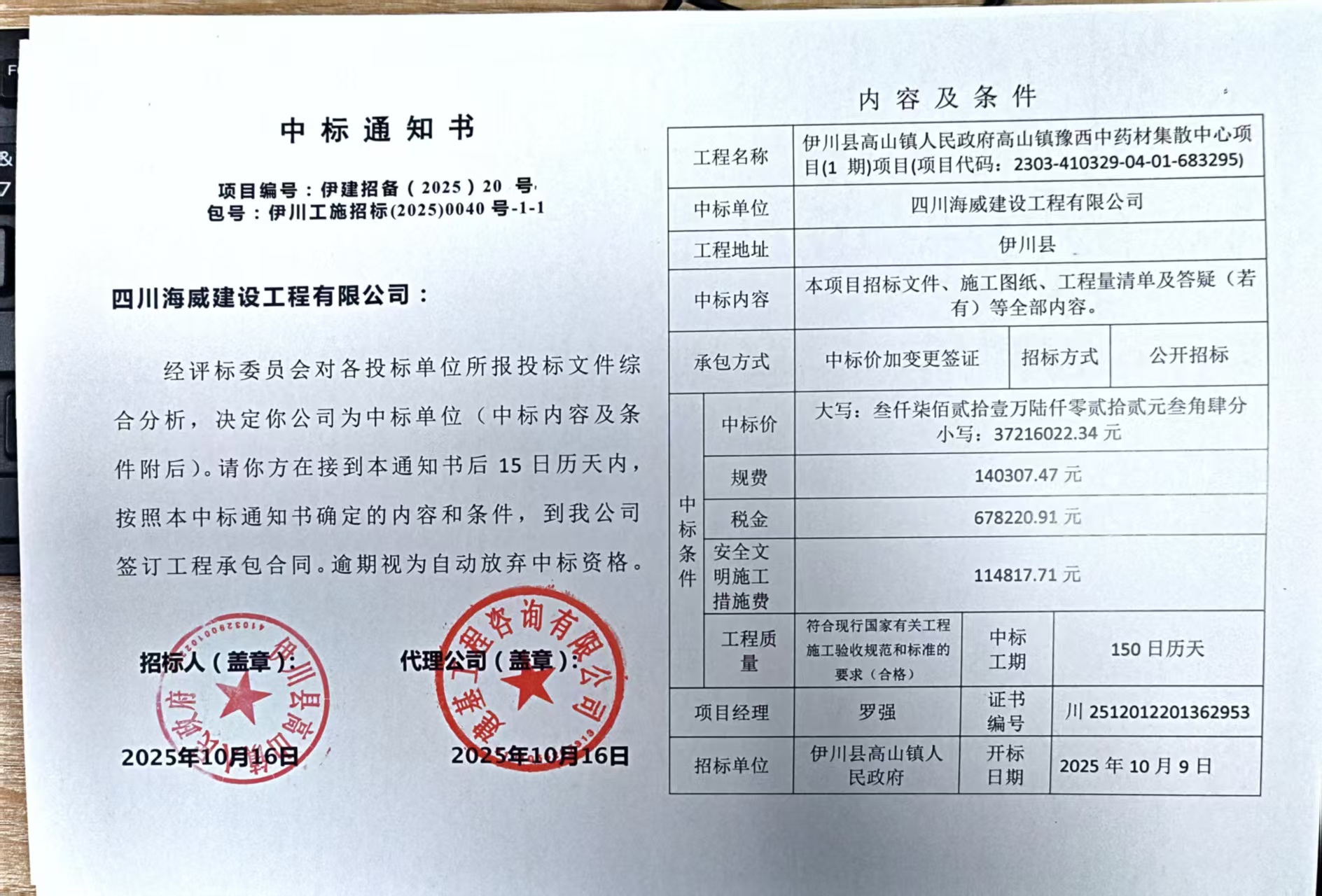| 1 | 其他市政公用设施施工 | 古马线道路、镇区供水管网、主要空间节点改造。 | 150日 | 罗强 | 川************ |
